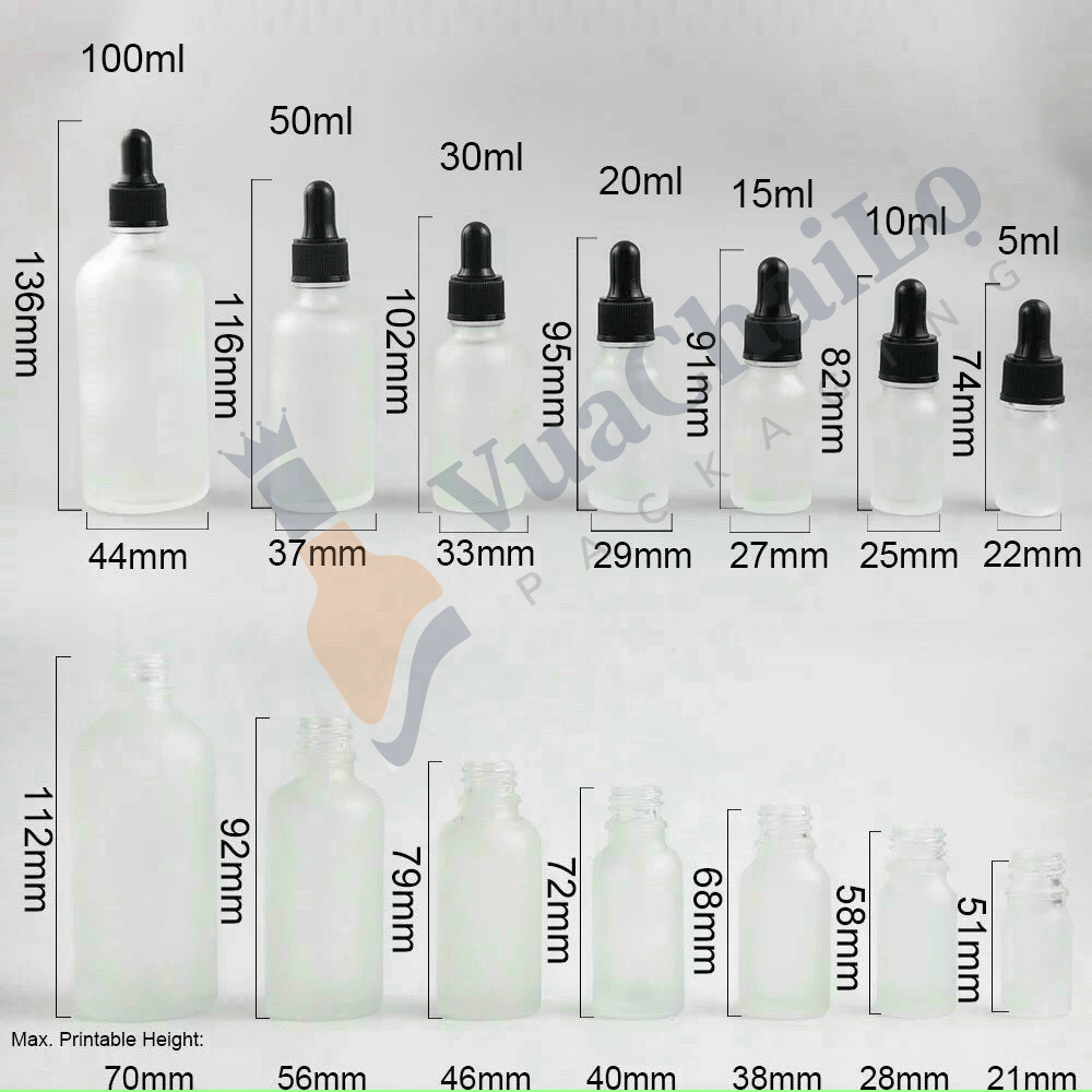 b. Chai màu trắng trong, dung tích từ 5ml; 10ml; 15ml; 20ml; 30ml; 50ml và 100ml