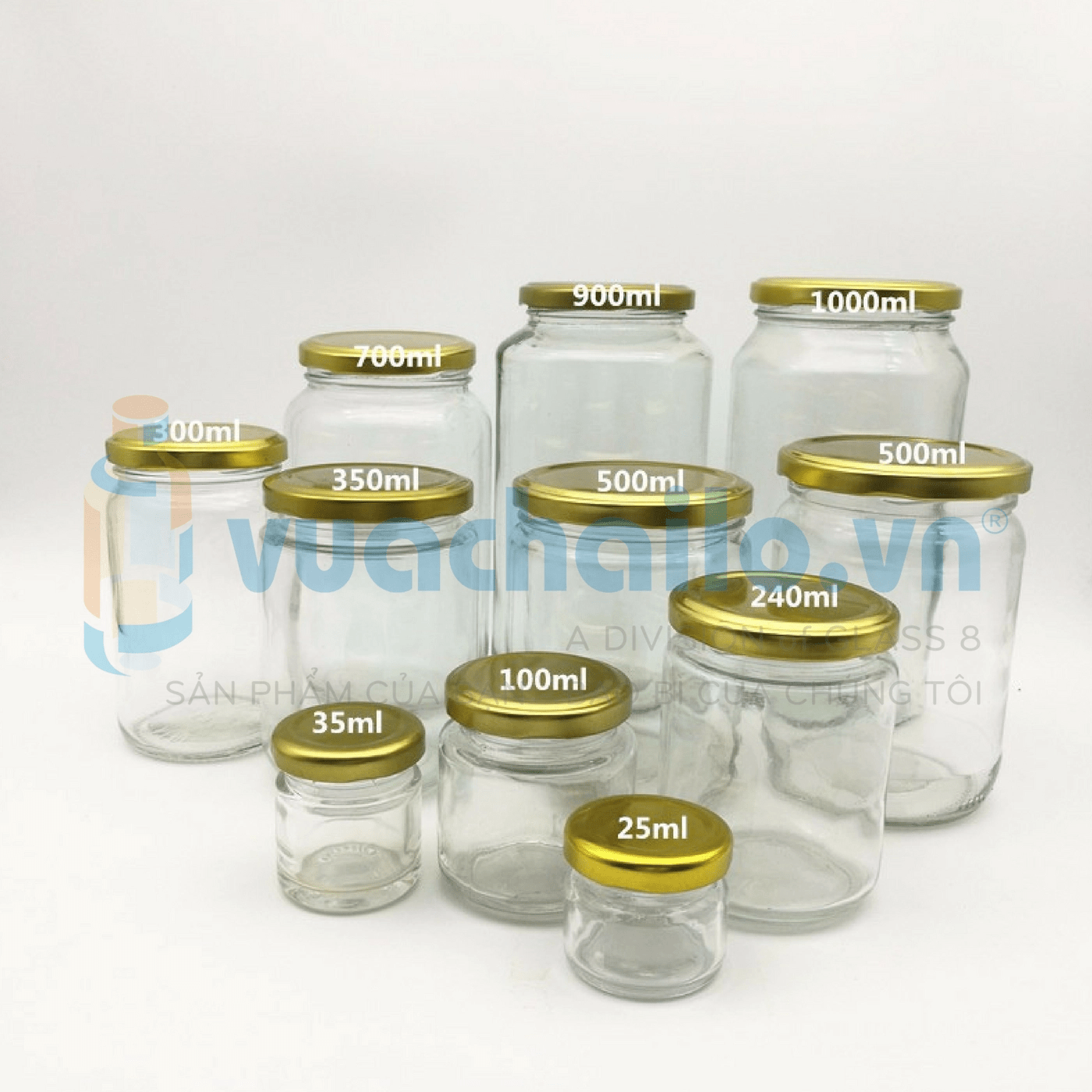 Hũ Thủy Tinh Tròn 5ml, 30ml, 75ml, 100ml, 150ml, 200ml, 300ml, 350ml, 375ml, 500ml, 750ml, 850ml, 1000ml