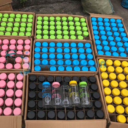 Nắp : nhựa vặn các màu vàng ,hồng xanh lá, xanh dương,đen,...